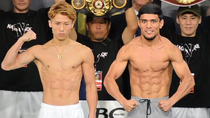 Weights from Nagoya, Japan, for the Ohashi Promotions card on Sunday (Top Rank Facebook in the U.S. and U.K., 4 a.m. ET, main event at approximately 6:40 a.m. ET): Naoya Inoue 121.7 pounds, Murodjon Akhmadaliev 121.3 (for Inoue’s undisputed junior featherweight title); Yoshiki Takei 118, Christian Medina 117.7 (for Takei’s WBO bantamweight title); Yuni Takada 104.7, Ryusei Matsumoto 104.7 (for vacant WBA “regular” strawweight title).