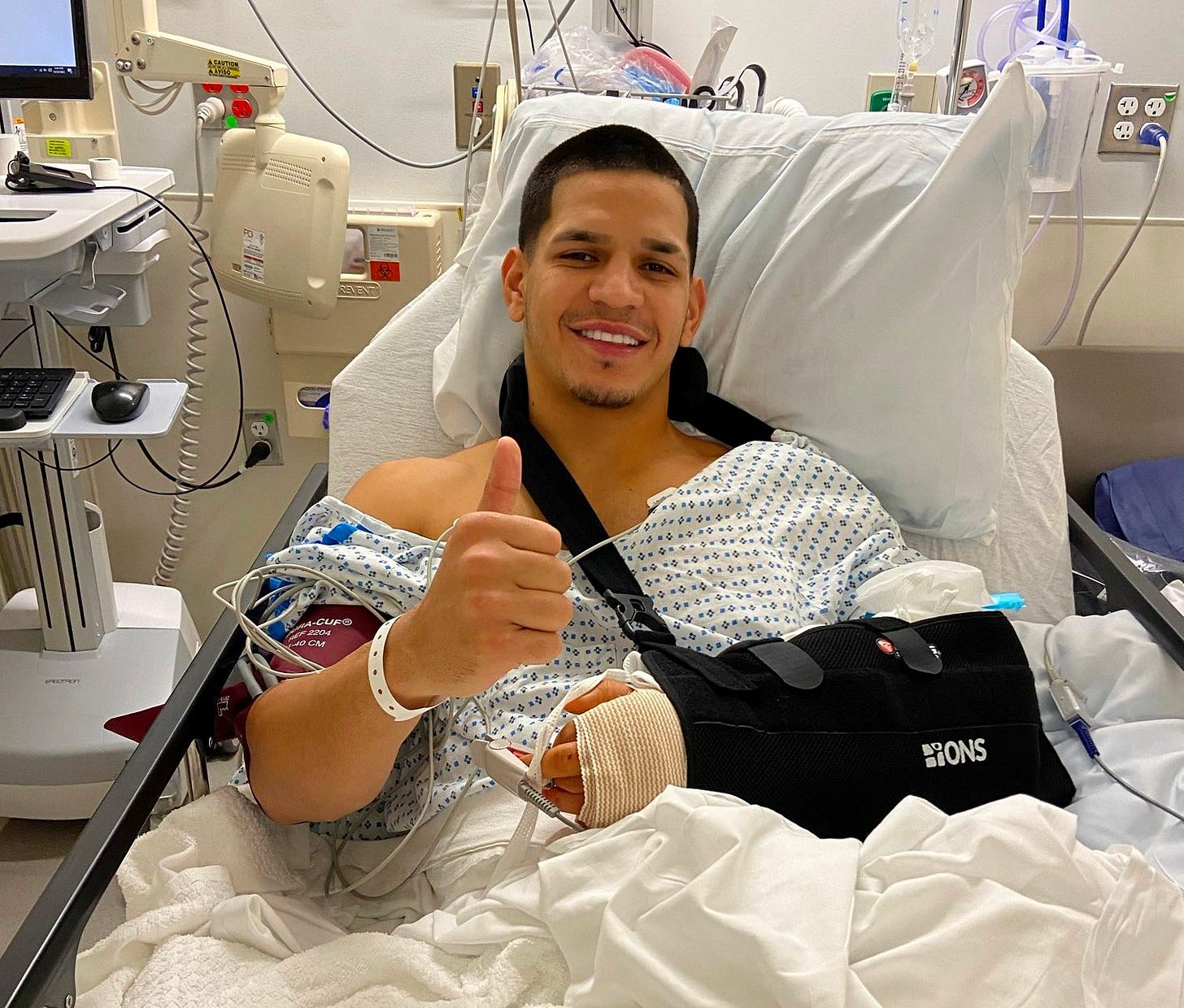 Big-hitting super middleweight prospect Edgar Berlanga underwent surgery on his torn left biceps on Wednesday in Stamford, Connecticut.