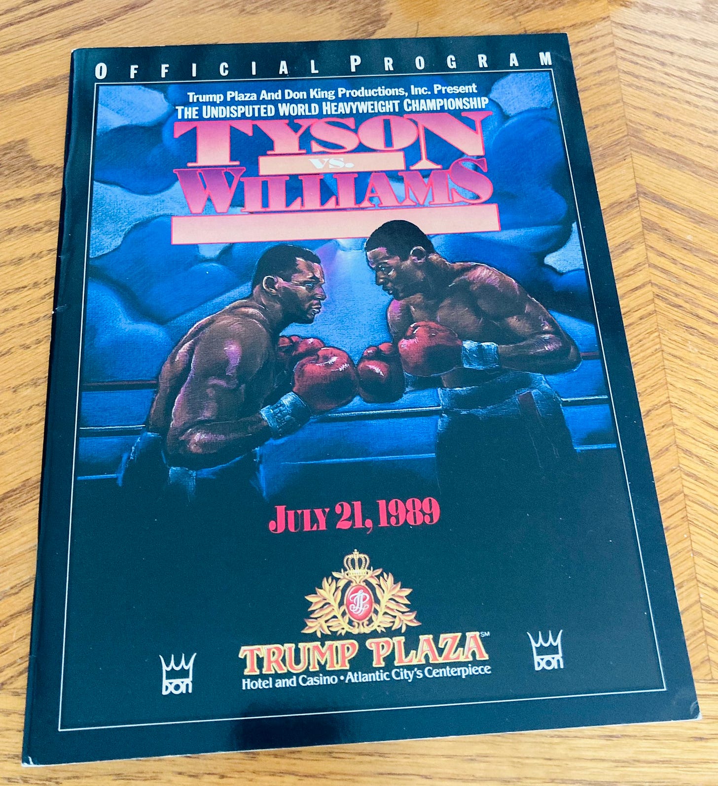 Mike Tyson reached the apex of his career when he destroyed Michael Spinks in 91 seconds of their heavyweight championship fight, but Tyson’s path of destruction continued for two more fights. He knocked out Frank Bruno in the fifth round to retain the undisputed title and then came a mandatory defense against Carl “The Truth” Williams, who a few years earlier lost a 15-round decision challenging then-champion Larry Holmes. But Williams was no match for the peak Tyson, who mowed him down in just 93 seconds at the Convention Center (now called Boardwalk Hall) in Atlantic City, New Jersey. The fight was on July 21, 1989 — 34 years ago on Friday. Buster Douglas would be up next for Tyson. Here is a program from Tyson-Williams in my collection.