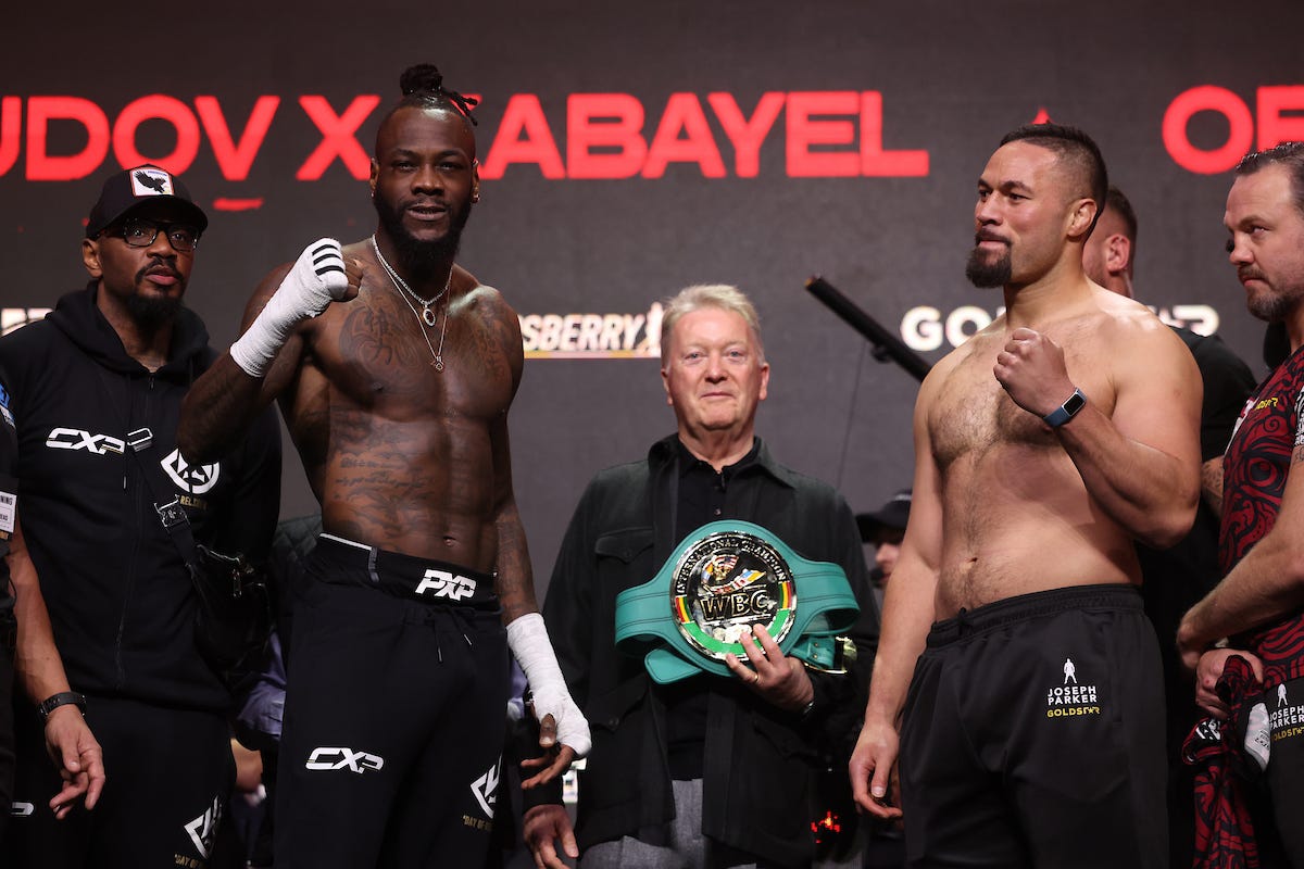 Weights from Riyadh, Saudi Arabia, for Saturday’s “Day of Reckoning” mega DAZN PPV card: Anthony Joshua 251 pounds, Otto Wallin 238.2; Deontay Wilder 213, Joseph Parker 245.3; Daniel Dubois 239, Jarrell Miller 333; Dmitry Bivol 174.6, Lyndon Arthur 174.2 (for Bivol’s WBA light heavyweight title); Arslanbek Makhmudov 262, Agit Kabayel 241.3; Jai Opetaia 198.4, Ellis Zorro 197.4 (for Opetaia’s lineal cruiserweight title); Filip Hrgovic 246, Mark De Mori 242.6; Frank Sanchez 238, Junior Fa 278.9.