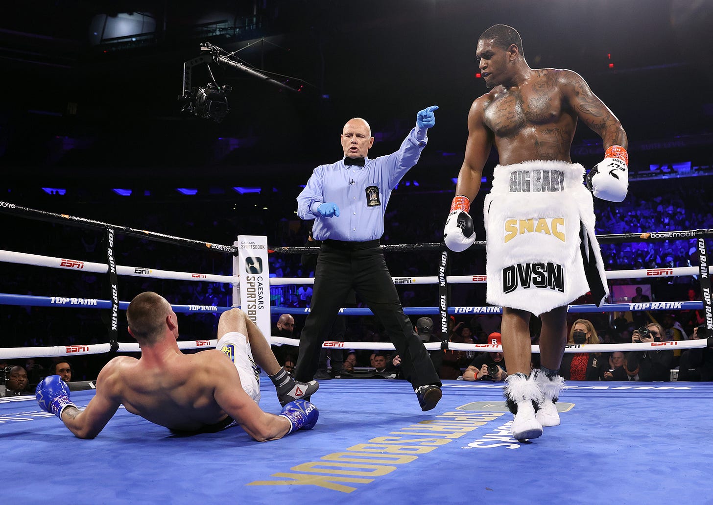 Blue chip lightweight prospect Keyshawn Davis dazzled in his return to professional boxing after claiming a silver medal at the Tokyo Olympics this past summer by knocking out Jose Zaragoza in the second round of their scheduled six-rounder.